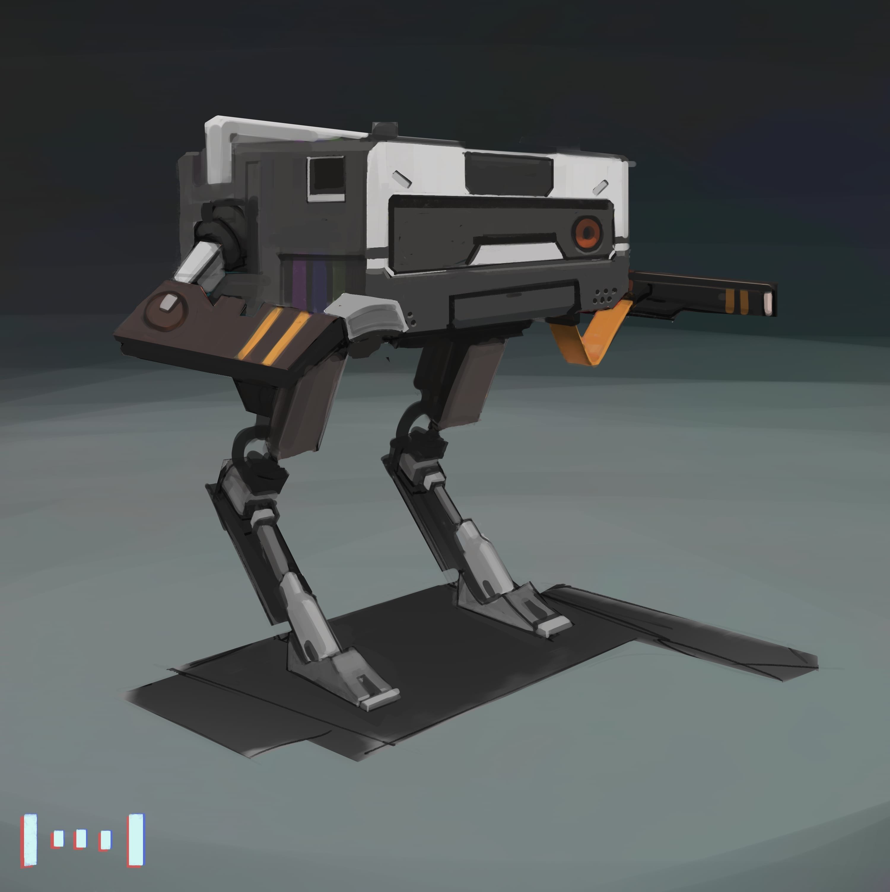 Weapon concepts. I had to design a lot of these weapons to be easy and quick to 3D model, since I would be doing it myself.
